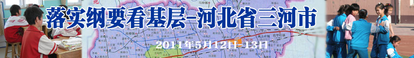 2011年5月12日-13日,教育部新闻办公室与人民日报、新华社、半月谈杂志、光明日报、经济日报、中央人民广播电台、中国青年报、中国教育报、中国教育报、中国教育电视台、科技日报、中国改革报、农民日报、人民政协报、新华网、腾讯网、教育部门户网站、中央教科所等单位一行22人,到河北三河市就农村教育发展情况进行采访报道。
