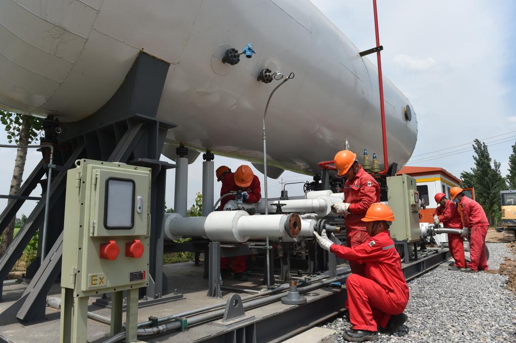 图为中国石化胜利油田注汽技术服务中心技术人员正在纯梁油区进行二氧化碳注入前的准备工作。(图片来源:中国石化)
