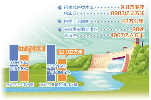 “我国水资源短缺,时空分布极不均衡,必须坚持开源节流并重。”李国英说,一方面,科学规划建设南水北调等一批大型跨流域、跨区域调水工程,初步形成“南北调配、东西互济”的水资源配置总体格局;另一方面,实施国家节水行动,全面推进农业节水增效、工业节水减排、城镇节水降损。2020年我国万元GDP用水量57.2立方米、万元工业增加值用水量32.9立方米,分别比2015年下降28%和39.6%。