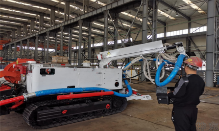 近日,神东首台履带式喷浆机器人在锦界煤矿地面调试完成,计划交付砼底板队进行井下工业性试验。