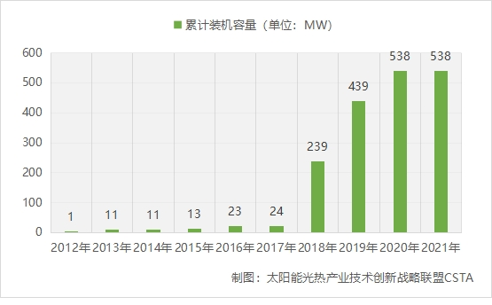图:2021年底我国太阳能热发电累计装机容量
