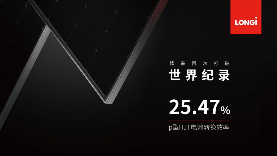 近日,经德国哈梅林太阳能研究所(ISFH)认证,隆基采用掺镓p型硅片制备的硅异质结电池(p-HJT)获得效率新突破:完全利用可量产工艺在全尺寸(M6尺寸,面积274.3cm²)单晶硅片上,创造了转换效率为25.47%的大尺寸p型光伏电池效率世界纪录,进一步验证了低成本异质结量产技术的可行性。