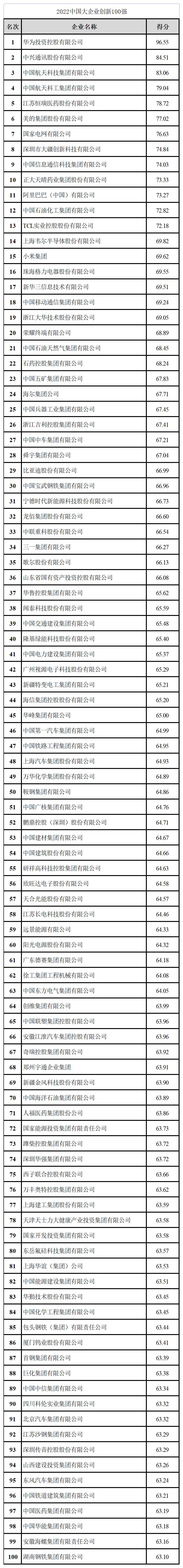 2022年9月6日,中国企业联合会、中国企业家协会(简称中国企联)在京举办新闻发布会,发布了“中国大企业创新100强”榜单。