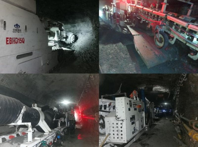 大断面岩巷智能掘进成套装备总装机功率近900kW,适用于复杂地质条件下的岩巷智能掘进。该岩巷智能掘进成套装备以EBH315Q横轴式硬岩掘进机为龙头,配套锚杆锚索支护系统、煤岩运输系统、除尘系统、智能控制系统等,形成了掘进工作面掘进、支护、运输全工序机械化作业线,实现了掘、支平行作业,是我国大断面岩巷智能掘进方面取得的重大突破。