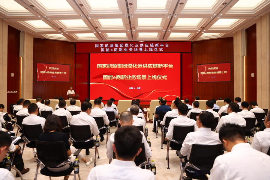 7月26日,国家能源集团在京举办煤化运供应链新平台——“国能e商”平台新业务场景上线仪式,标志着国家能源集团“国能e商”平台(以下简称国能e商)正式上线。国家能源集团充分发挥自身煤炭、电力、化工、运输等全产业链布局一体化运营优势,全面打造以煤为主,覆盖化学品、运输产业的大宗能源供应链平台,助力全国统一大市场建设,为促进供应链上下游企业协同发展、供需精准匹配和产业转型升级提供解决方案。国资委改革局副局长张博,中国煤炭运销协会理事长杨显峰,国家能源集团党组书记、董事长刘国跃等领导出席仪式。