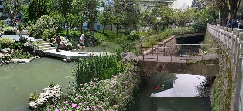北控水务集团作为鼓楼区河湖的“企业河长”,在梅峰河旁边兴建污水处理厂,助力福州治理河湖水系。经过治理后,梅峰河上架起了优美的景观步道小桥,河岸边建设了错落的园林造景,通过清淤、重建河道等手段治理,梅峰河水质得到了极大的改善,为市民提供了极佳的休闲游憩环境。(左)pagebreak