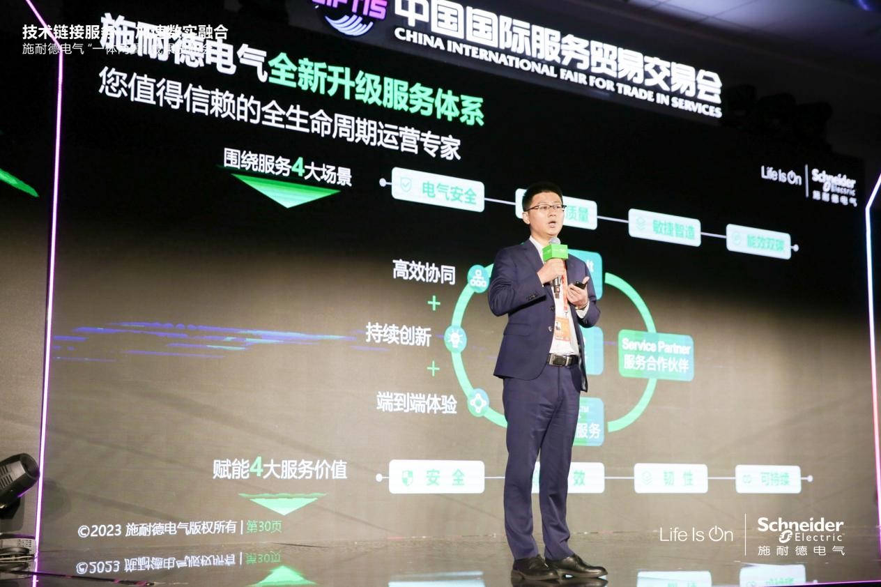 近日,以“开放引领发展,合作共赢未来”为主题的2023中国国际服务贸易交易会(以下简称“服贸会”)于北京举行。作为全球能源管理与自动化领域的数字化转型专家,施耐德电气在服贸会上发布“1+3”服务创新成果,以“1大服务体系+3大服务业务落地实践”赋能更多中国企业数字化和绿色化“双转型”平稳落地,彰显其深耕中国、引领生态共同高质量发展的决心。