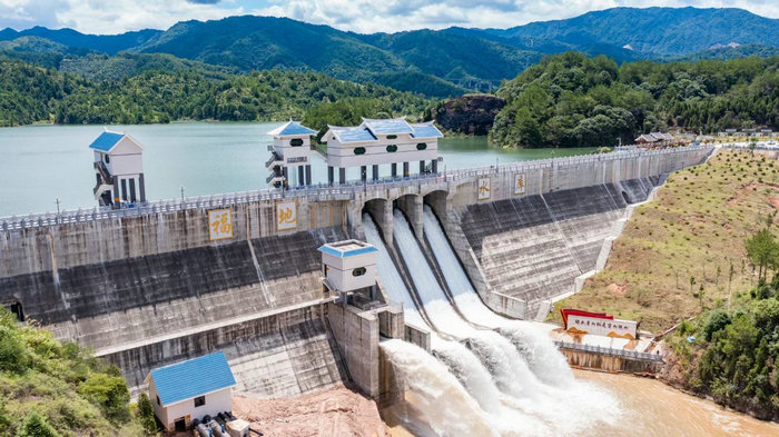 长汀荣丰水库总库容1180万立方米,总投资2.72亿元,是一座具有供水、防洪、灌溉、改善生态环境等综合利用功能的中型水库。荣丰水库作为长汀城乡供水一体化重要的水源性工程,配套建设日供水规模5万吨的荣丰水厂,二者共同发挥“三供一补”作用,为长汀县大同镇、策武镇、河田镇约23万人提供生产生活用水,进一步提升长汀县城乡供水安全保障能力,促进县域经济社会发展。
