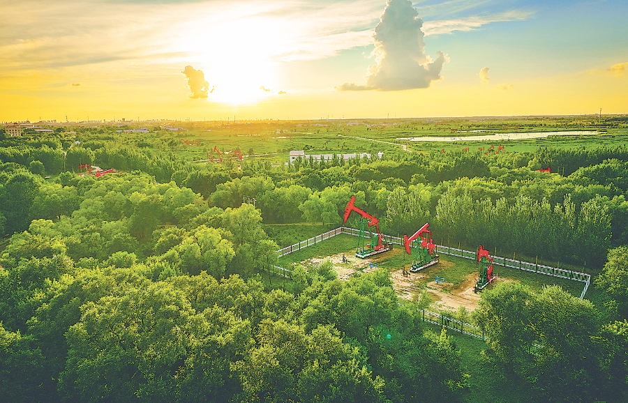 绿意盎然的中国石油大庆油田生产现场。张琦 摄