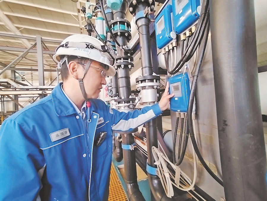 中国石油云南石化麻鹏锋在检查超滤进水水质情况。黄晓洪 摄