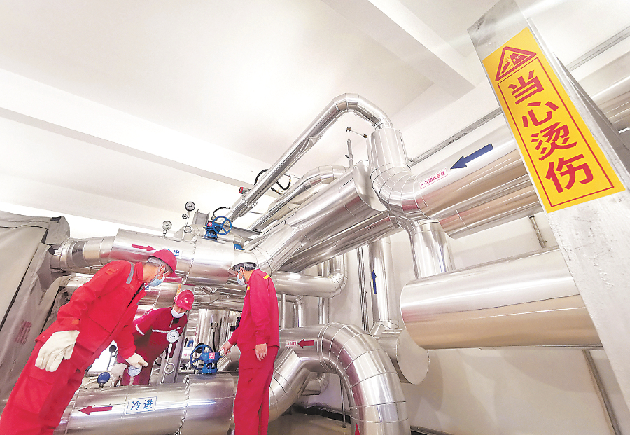 中国石油华北油田雄安分公司工作人员检查0701地热项目设备运行状况。杨凯 摄