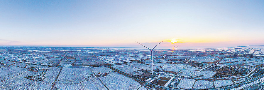 2023年12月22日,吉林省松原市处处是冰天雪地的景象。我们在驱车前往北湖风电场的路上,看到查干湖畔一台台风机随风转动,把一度度电输送到各个生产现场,心里甭提有多高兴了。