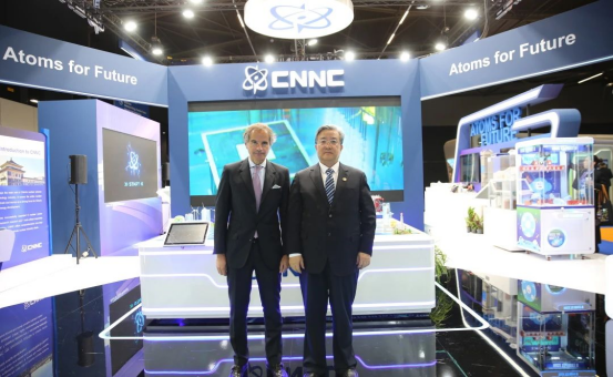 大会期间,中核集团展台集中展示了集团公司在先进核能技术、核电建设、核能多用途应用、清洁能源综合解决方案等方面的能力,彰显了以全产业链合力参与国际合作的独特优势。展会上,中核集团使用电子沙盘打造未来“核能智慧城市”,通过沙盘灯光与海水、建筑物等连接,表现了包括“华龙一号”、“玲龙一号”、高温气冷堆、聚变堆等不同堆型在发电、海水淡化、制氢、石油化工等方面的多元化应用,展示核能在未来人类生活中无处不在。