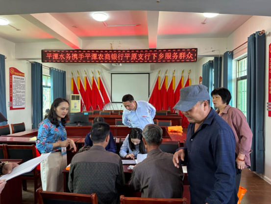 图为工作人员为平原江楼村群众办理水费绑定银行卡代扣业务。陈羽珊摄