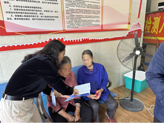 图为工作人员为敖东敖网村群众讲解自来水知识,解答用水问题。陈羽珊摄