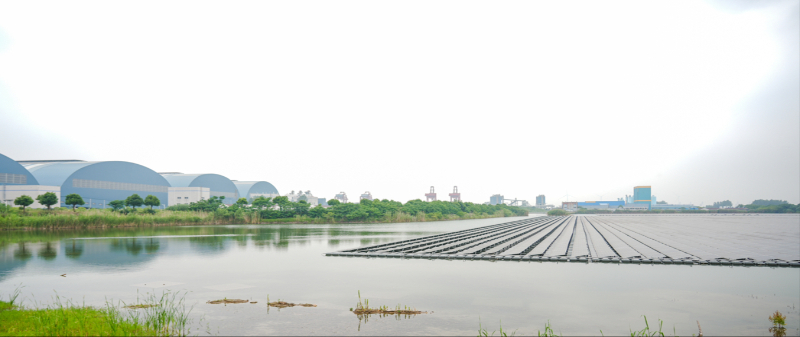 与此同时,在推进清洁能源建设方面,泰州电厂建设的水面光伏于2021年12月23日成功并网发电,采用分块发电、集中并网的方案。水面上2个方形矩阵,共计34664块组件,以12°倾斜角安装在浮体上以便尽可能多的捕捉太阳能。水面光伏总容量18.7兆瓦,太阳照射一天,可以供9000多台家用太阳能热水器使用,实现了绿色低碳发展。