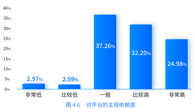 “我们在调研中发现,货车司机对使用数字货运平台的主观依赖度还是很高的。”中国人民大学中国就业与民生研究院执行副院长周广肃说。报告中指出,主观认为自己对平台的依赖程度较高和非常高的司机占全体调查司机的57.18 %,超过了总数的一半。