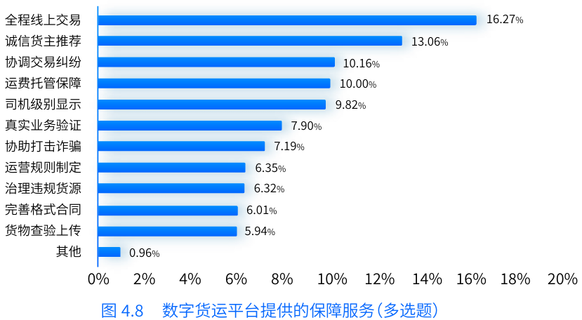 48.32%的司机认为数字货运平台减少了他们放空行驶的天数。其中,18.66%的司机认为平台大幅减少了他们放空行驶的天数。