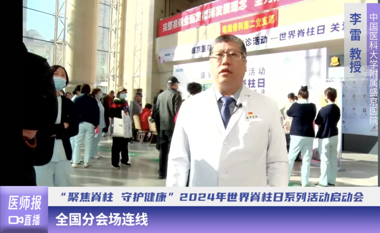 中国医科大学附属盛京医院李雷教授在连线中表示:随着人口老龄化的到来和人们生活方式的改变,脊柱疾病发病率逐渐升高,关注脊柱健康,积极和规范治疗脊柱疾病势在必行。让我们共同携手,一起推动脊柱健康知识的传播,开展更规范化的诊断和治疗。