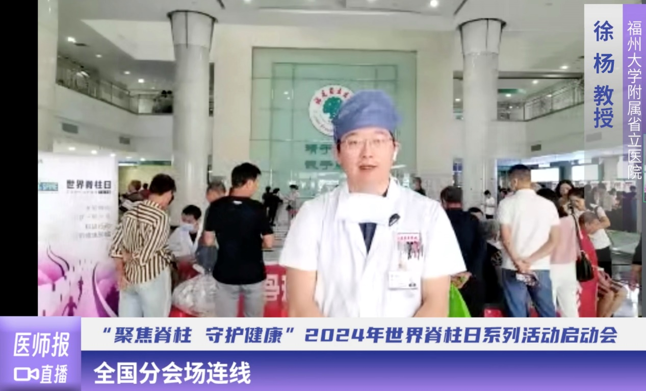 福州大学附属省立医院徐杨教授在连线中指出,脊柱健康关系到人体整体健康和生活质量,脊柱疾病已成为困扰现代人的最常见的问题之一,它不仅影响患者身体健康,更引发心理问题,加重社会负担。通过今天的义诊活动,希望可以普及脊柱健康知识,提高公众对脊柱疾病的重视程度,同时为患者提供初步的诊疗服务,从而减轻他们的病痛和经济负担。