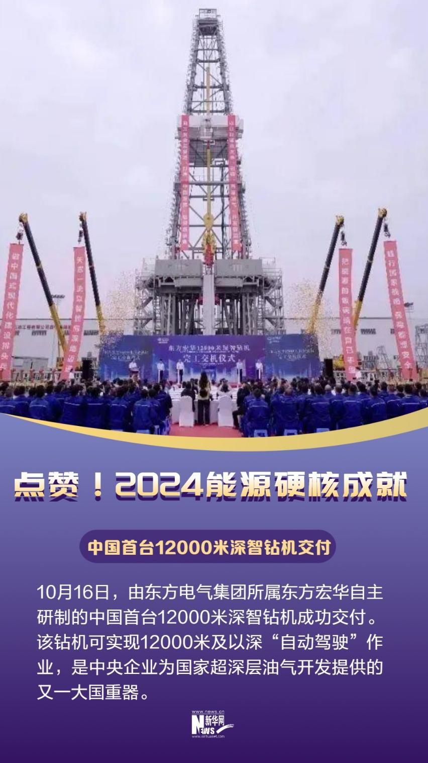 10月16日,由东方电气集团所属东方宏华自主研制的中国首台12000米深智钻机成功交付。该钻机可实现12000米及以深“自动驾驶”作业,是中央企业为国家超深层油气开发提供的又一大国重器。