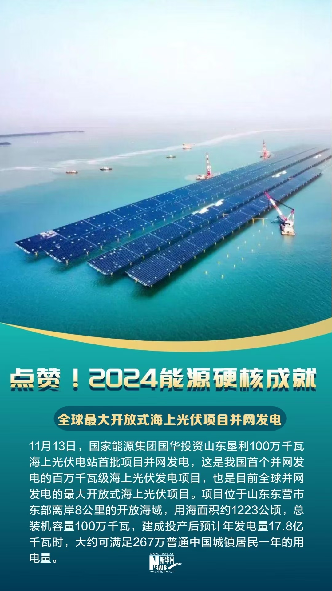 11月13日,国家能源集团国华投资山东垦利100万千瓦海上光伏电站首批项目并网发电,这是我国首个并网发电的百万千瓦级海上光伏发电项目,也是目前全球并网发电的最大开放式海上光伏项目。项目位于山东东营市东部离岸8公里的开放海域,用海面积约1223公顷,总装机容量100万千瓦,建成投产后预计年发电量17.8亿千瓦时,大约可满足267万普通中国城镇居民一年的用电量。