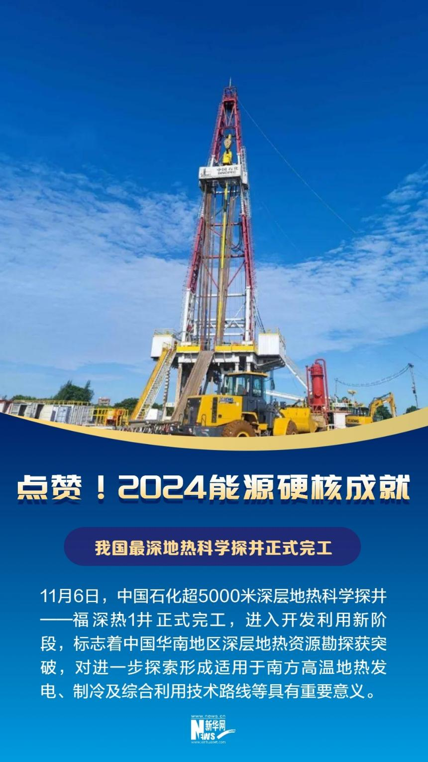 11月6日,中国石化超5000米深层地热科学探井——福深热1井正式完工,进入开发利用新阶段,标志着中国华南地区深层地热资源勘探获突破,对进一步探索形成适用于中国南方地区的高温地热发电、制冷及综合利用技术路线等具有重要意义。