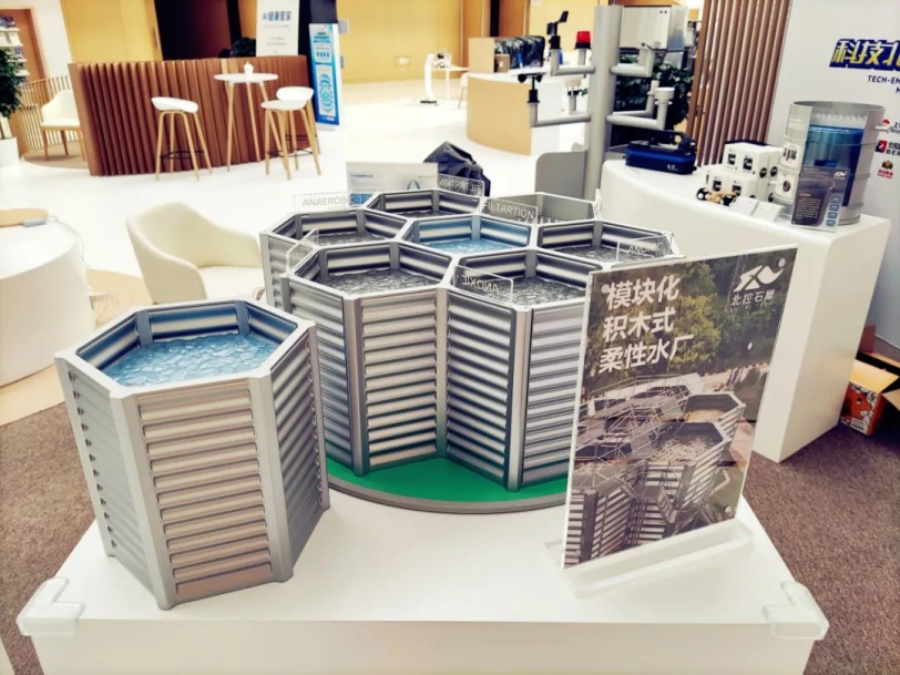 在专属展区,北控水务携旗下自主装备品牌——广东北控石犀科技股份有限公司推出两款低碳革新产品“北控速粒”和“装配式蜂巢”,以省占地、省投资、高效能为显著优势,引发广泛关注。