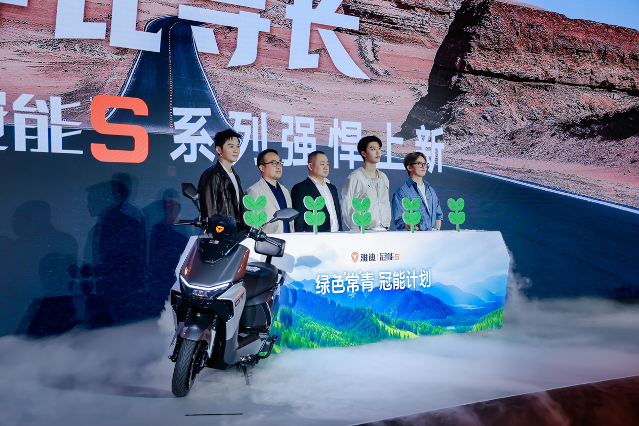 不仅如此,发布会上,雅迪联合蚂蚁森林、浙江卫视Z公益共同发起绿色长青冠能计划,向奋战在一线岗位的护林员捐赠全新雅迪冠能S白鲨电动车,以公益之举勇担品牌责任,为绿色出行持续冠能!