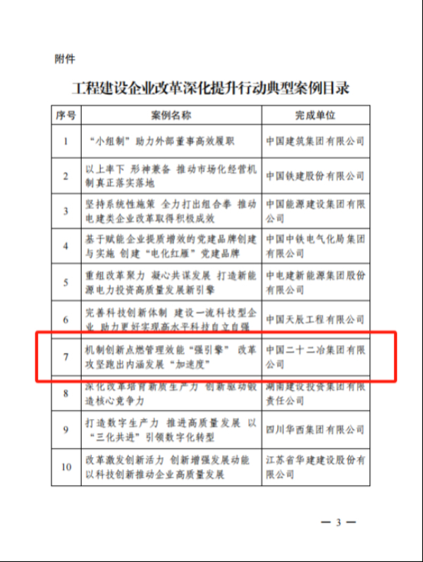 中国二十二冶改革案例《机制创新点燃管理效能“强引擎” 改革攻坚跑出内涵发展“加速度”》成功入选,彰显了二十二冶在深化改革提升方面取得显著成效,展现了二十二冶近年来的高质量发展。