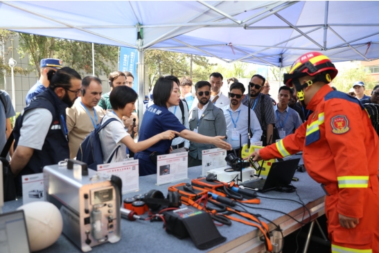 在装备实操区,各国学员分组体验了气体检测仪校准、无人机航线规划、液压破拆工具操作等技能。