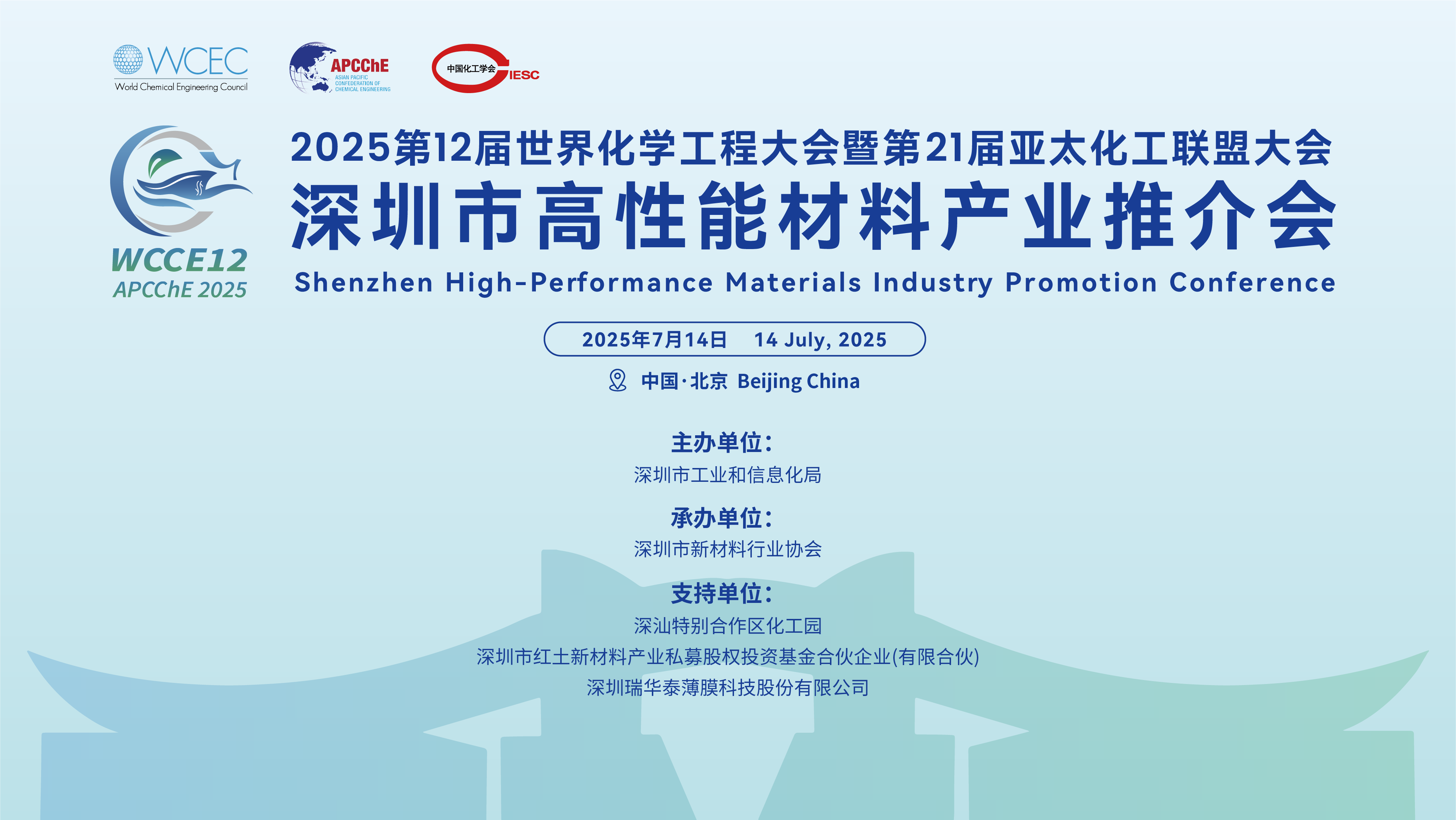 7月14日上午,由深圳市工业和信息化局主办、深圳市新材料行业协会承办的“深圳市高性能材料产业发展推介会”在北京世界化工大会期间成功举办。活动得到了深汕特别合作区化工园、深圳市红土新材料产业私募股权投资基金及深圳瑞华泰薄膜科技股份有限公司等单位的支持。来自政府部门、研究机构、行业协会及全国化工材料领域的企业代表齐聚一堂,共话新材料产业发展趋势,共谋深圳高性能材料产业合作新机遇。