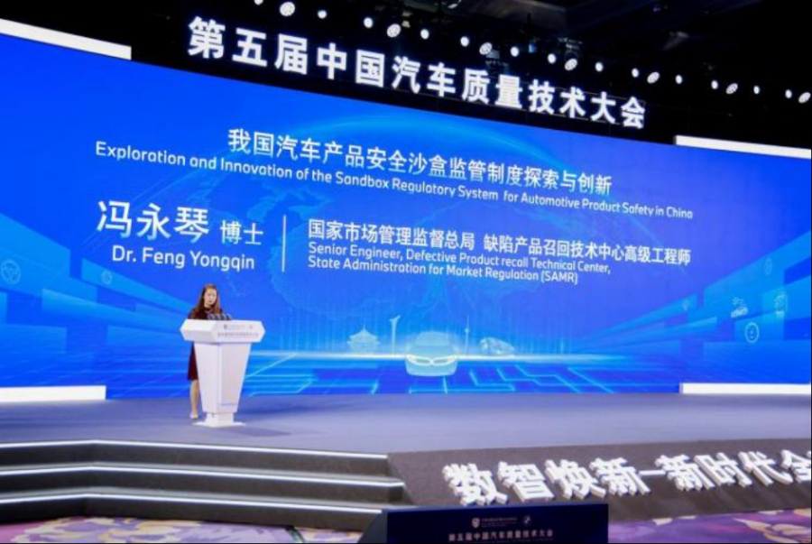 国家市场监督管理总局缺陷产品召回技术中心博士冯永琴作《我国汽车产品安全沙盒监管制度探索与创新》的主旨演讲