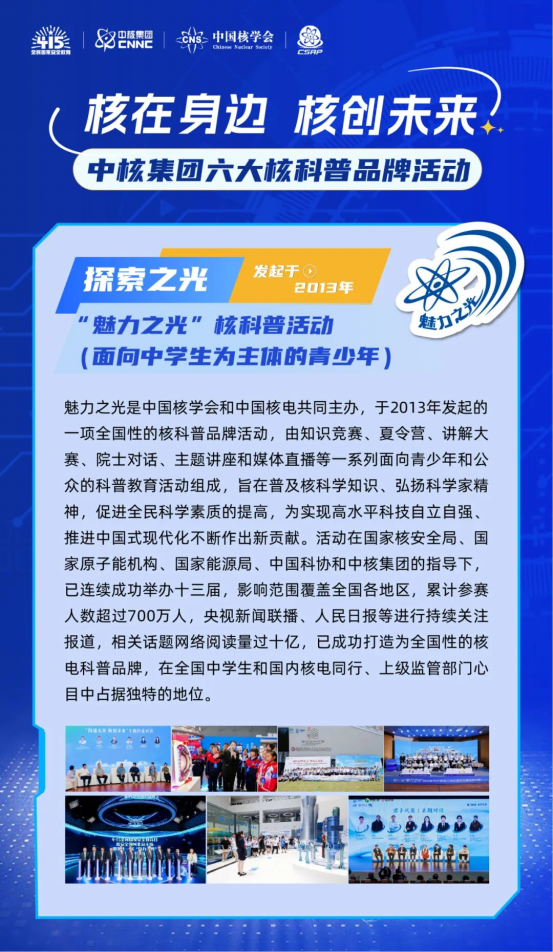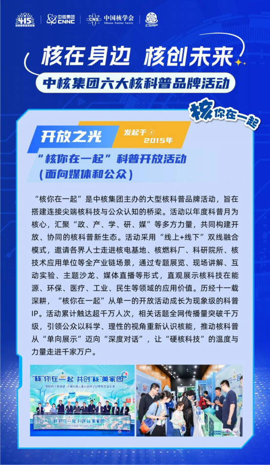 活动以“核在身边,核创未来”为核心理念,集中启动六大核科普品牌活动,并正式发布“核之光”2035行动计划,推动核科普从零散“活动式”宣传,迈向系统“生态化”建设,构建政产研学媒且全民参与的核科普新格局。