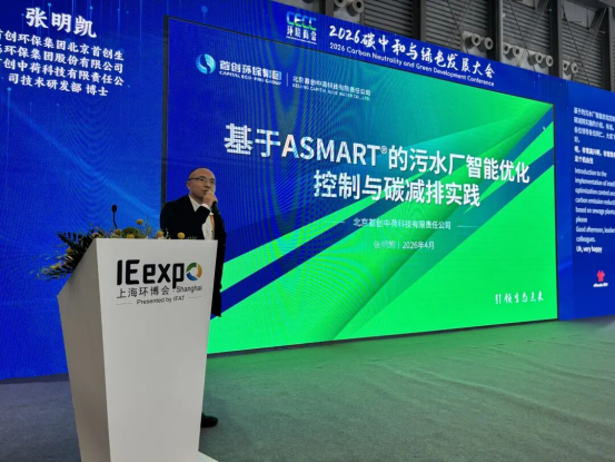 首创环保集团张明凯博士作主题为《基于由ASMART®的污水厂智能优化控制与碳减排实践》的演讲,分享了由首创环保集团自主研发的ASMART®污水厂模型智控系统的工作原理及降碳优势。张明凯表示,ASMART®系统以生物建模技术和人工智能技术为核心,融合自动化技术、信息技术、物联网技术,实现污水处理厂的工艺运行优化和智慧控制,能够有效解决传统污水处理厂各工艺环节粗放运行、出水安全风险高、设备运行低效等问题。从应用效果来看,一座处理规模20万吨的污水处理厂在搭载ASMART®系统后,一年的碳减排量可达到4880吨二氧化碳当量,相当于种植约24.4万棵树的年碳汇量,或减少约1700辆家用车的年排放量。