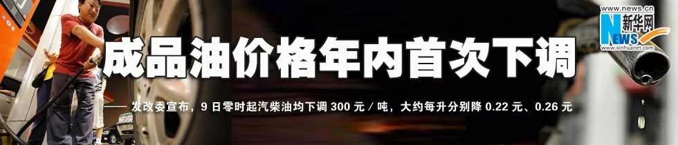 国家发展和改革委员会8日宣布,从9日零时起下调成品油最高零售价格,汽柴油均下调300元/吨,大约每升分别降0.22元、0.26元。 [详细]