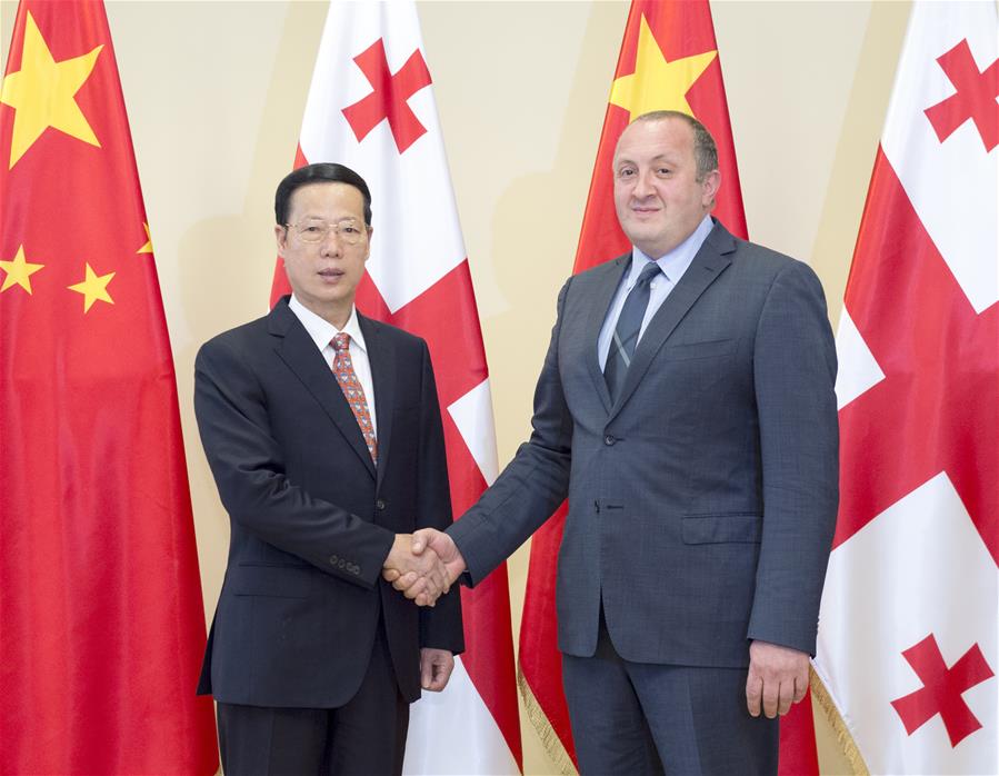 In the meeting with Georgian President Giorgi Margvelashvili, Zhang hailed the traditional friendship with Georgia and the achievements scored on bilateral relationship since the establishment of diplomatic ties 24 years ago.