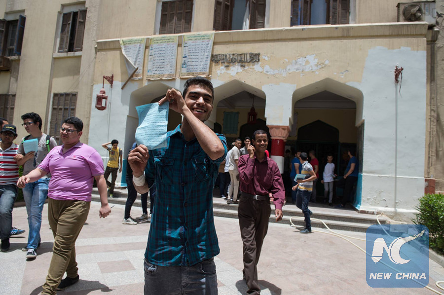 "Such exams determine my future and I have to get high marks so I could join a good public university," Ahmed Ibrahim, a science/mathematics student told Xinhua as he reviewed his answers of the physics exam with his classmates near Maadi military secondary school in Maadi district of Cairo.