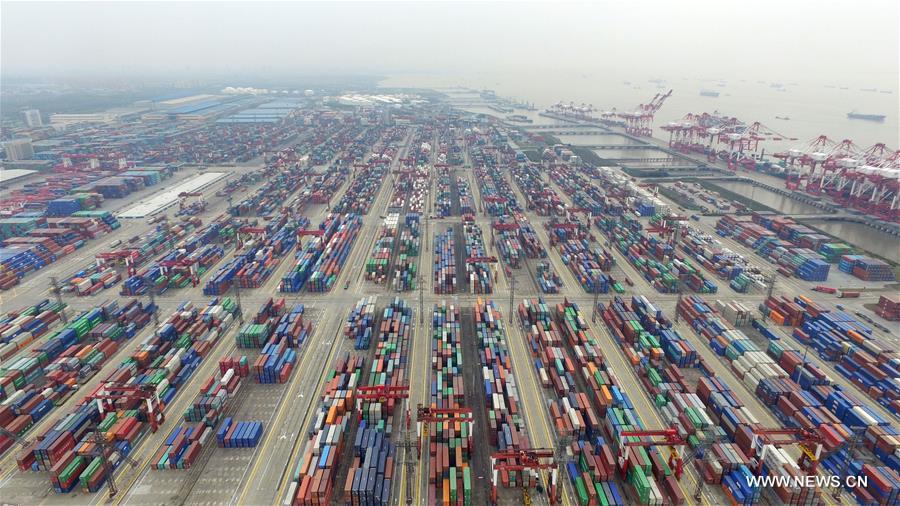 SHANGHAI, April 15, 2016 (Xinhua) -- This aerial photo taken on March 29, 2016 shows a view of the free trade zone in Shanghai, east China. China'sGDPstood at 15.9 trillion RMB yuan (2.4 trillion U.S. dollars) in the first quarter this year, growing up by 6.7 percent year on year, the National Bureau of Statistics said on April 15, 2016. (Xinhua/Ding Ting)