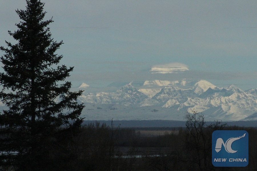 This photo taken Sunday, April 24, 2016, in Talkeetna, Alaska, shows Denali partially obscured by clouds. The U.S. Army helped set up base camp on North America's tallest mountain. (AP Photo/Mark Thiessen)