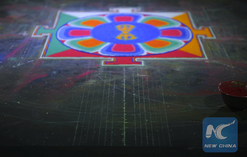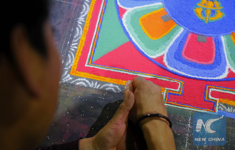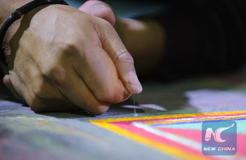 BEIJING, Sept. 23 (Xinhua) -- It takes weeks -- or even months -- to lay millions of sand grains to create sacred patterns. Then they will be destroyed. At the heart of the process of creation and destruction dwell the transcendental ideas of Tibetan Buddhism.