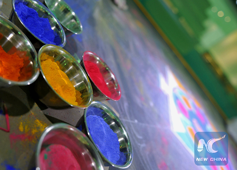The colored powders for making Tibetan sand mandala. (Xinhua/Jigme Dorje)