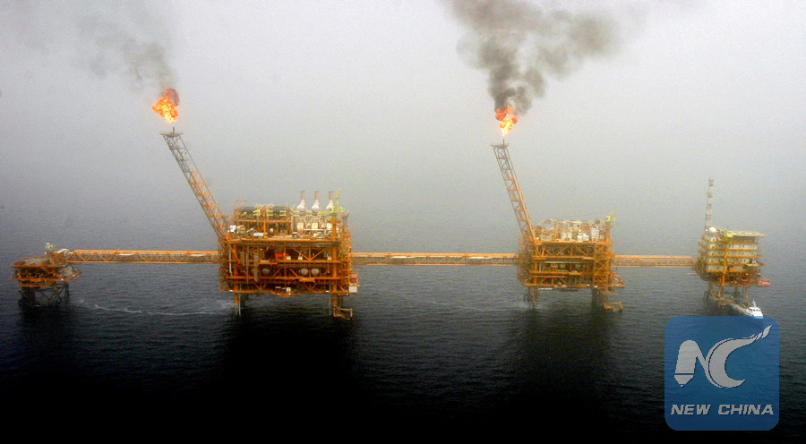 Gas flares from an oil production platform are seen at the Soroush oil fields in the Persian Gulf, south of the capital Tehran, July 25, 2005. Picture taken July 25, 2005.(REUTERS Photo)