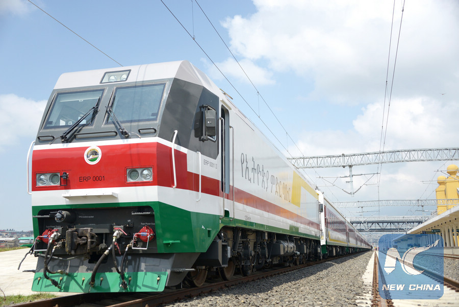 A new train stops at a railway station in suburban Addis Ababa, Ethiopia, Oct. 1, 2016. The Chinese-built railway linking the Ethiopian capital and the port of Djibouti, which is is set to become fully operational on Oct. 5, will be Africa's first modern electrified railway. (Xinhua/Sun Ruibo)
