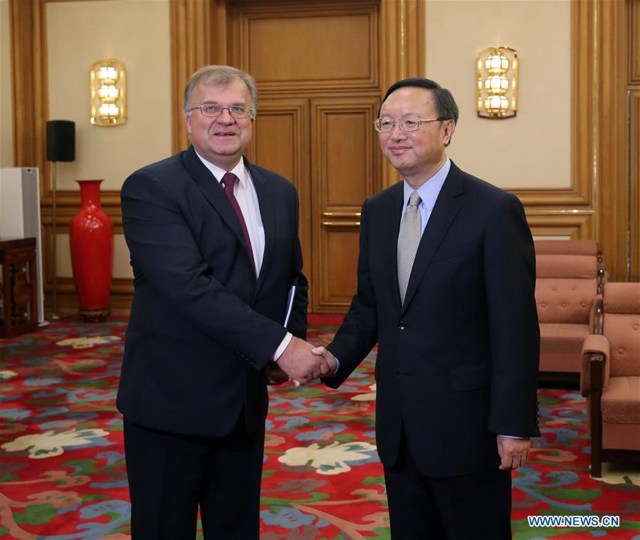 BEIJING, Oct. 9 (Xinhua) -- Chinese State Councilor Yang Jiechi met with his Lithuanian counterpart Alminas Maciulis in Beijing on Sunday, calling Lithuania an important partner of China in the Baltic Sea region and the European Union.