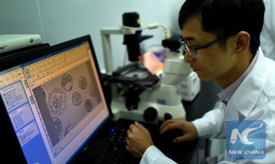 Associate Prefessor Huang Junjiu, also a gene-function researcher, makes experiments at Sun Yat-sen University in Guangzhou, capital of south China's Guangdong Province, April 2, 2016. In April of 2015, biologist Huang Junjiu published the first report of a human embryo with edited genes, sparking a global debate on the ethics of such research. In his study, Huang and his team used spare embryos from fertility clinics that could not progress to a live birth, and modified the gene, responsible for a kind of blood disorder, in the embryos. To accomplish the task, they adopted a powerful technique known as CRISPR-Cas9, which can be programmed to precisely alter DNA at specific sequences. (Xinhua/File Photo)
