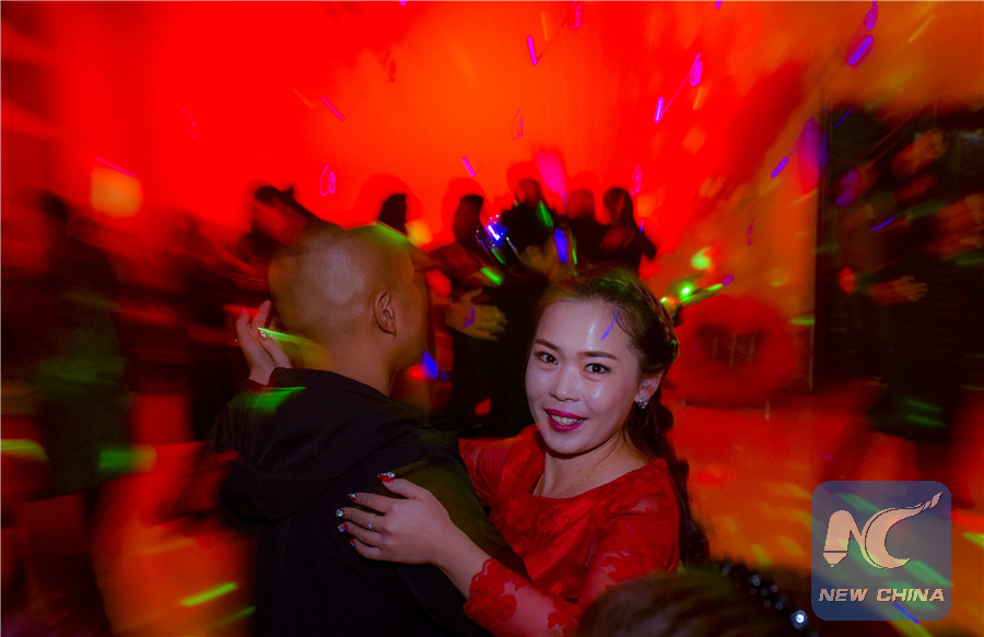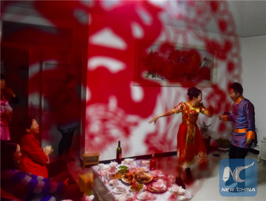 The bride, Kong Ning, dances Daur traditional dance -- Ahanbei.