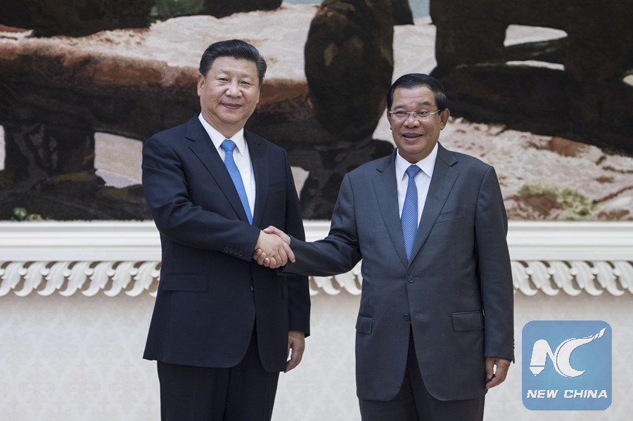 "China ... stands ready to work with Cambodia to constantly enrich the meaning of their comprehensive strategic cooperative partnership, thus delivering more tangible benefits to both peoples," Xi said.