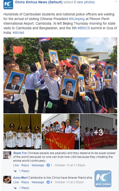 President Xi's visit would further strengthen the "deeply-rooted historical relationship" between China and Cambodia, and enhance the "unbreakable friendship," a netizen said on Facebook.