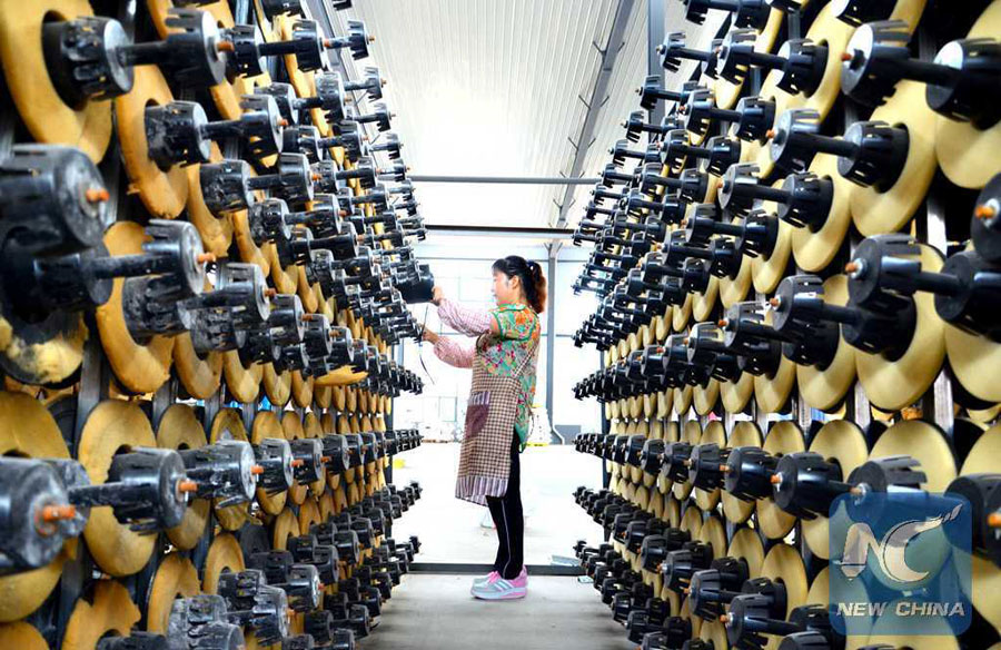 A worker works at a medical plastic factory in Yiyuan County, east China's Shandong Province, July 13, 2016. (Xinhua/Zhao Dongshan)